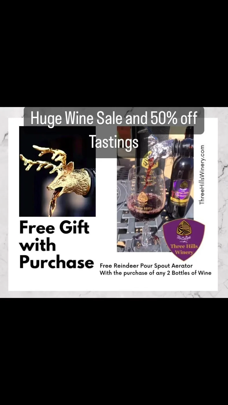 All our wines are available for pick-up and for shipping. Please email to schedule a pick-up at info@ThreeHillsWinery.com. For delivery purchase here.